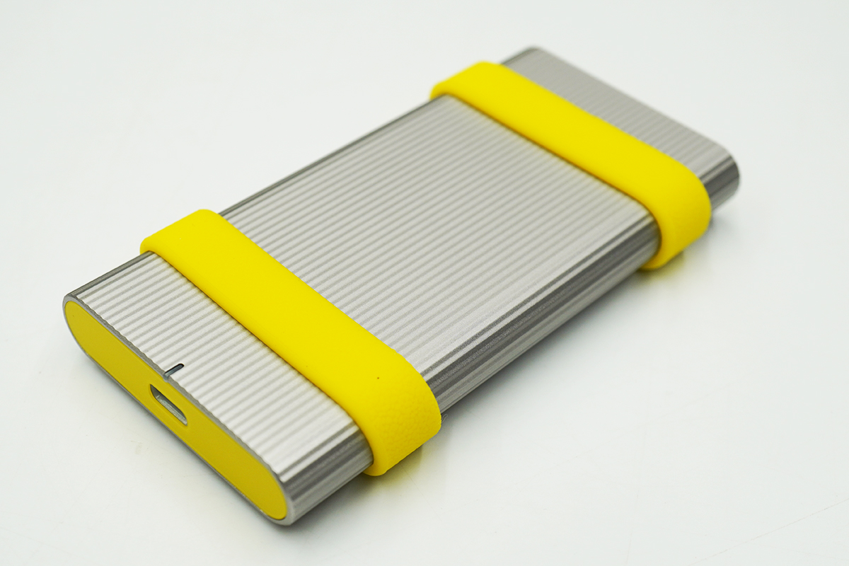 この図を見ると黄色いプラスチック表面の下に、側面プレートとシリコン製コネクタプレートがネジ止めされており、内部にM.2 SSDとそれを接続する基板という、他の外付けSSDケースとそう大差ない構成となっている。