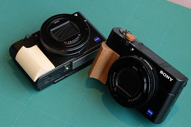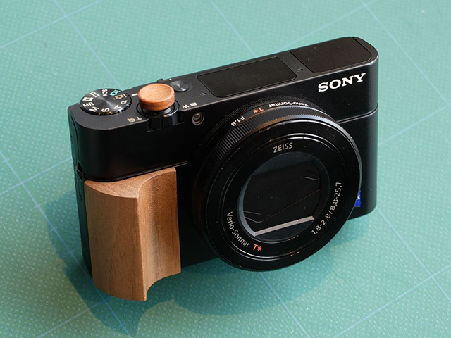 本体デザインを活かす ULYSSES製 RX100シリーズ用ウッドグリップの試作サンプル。