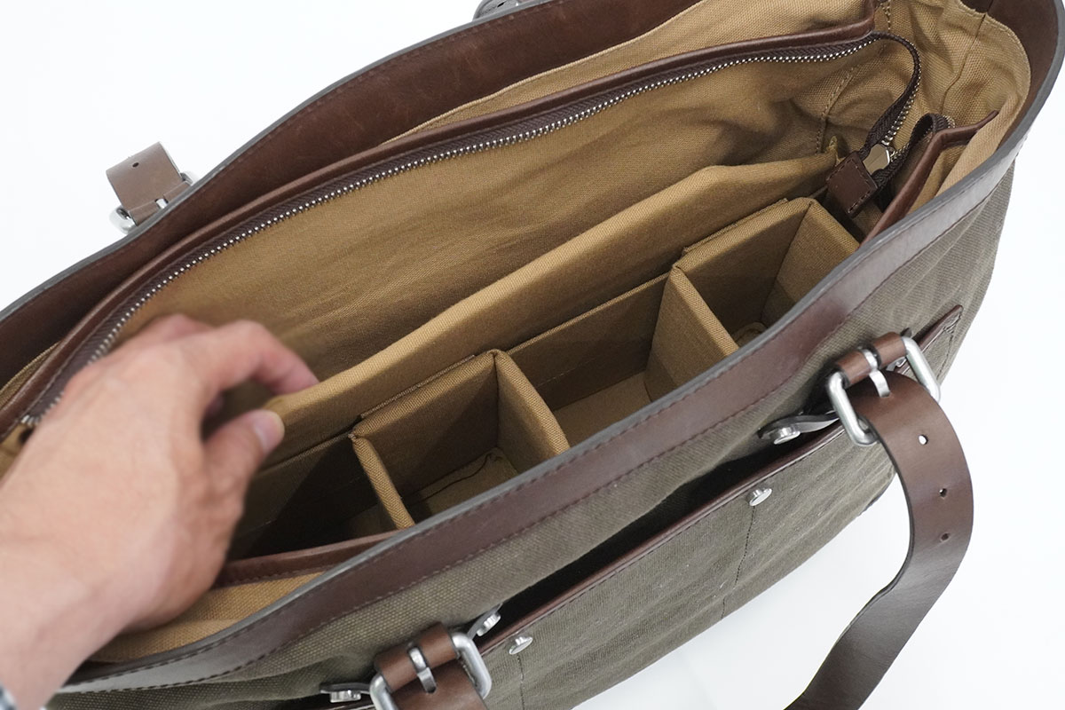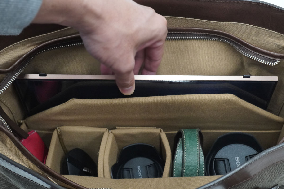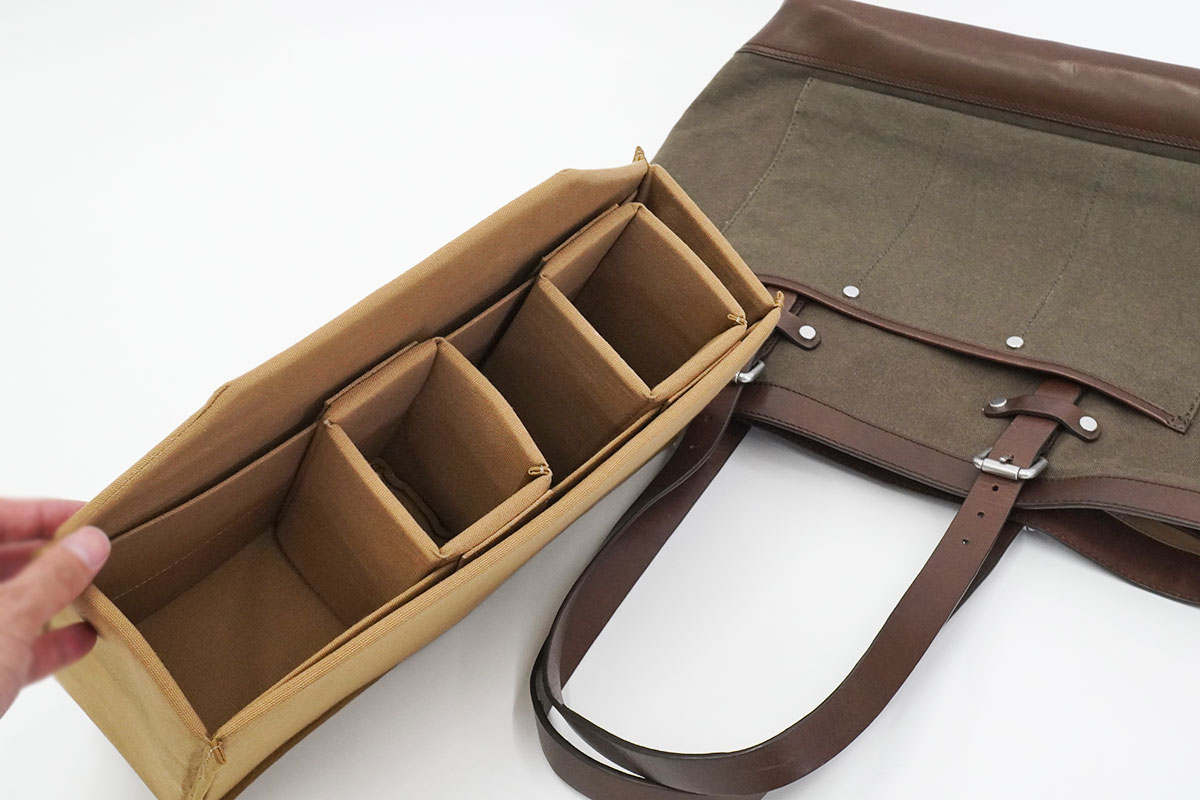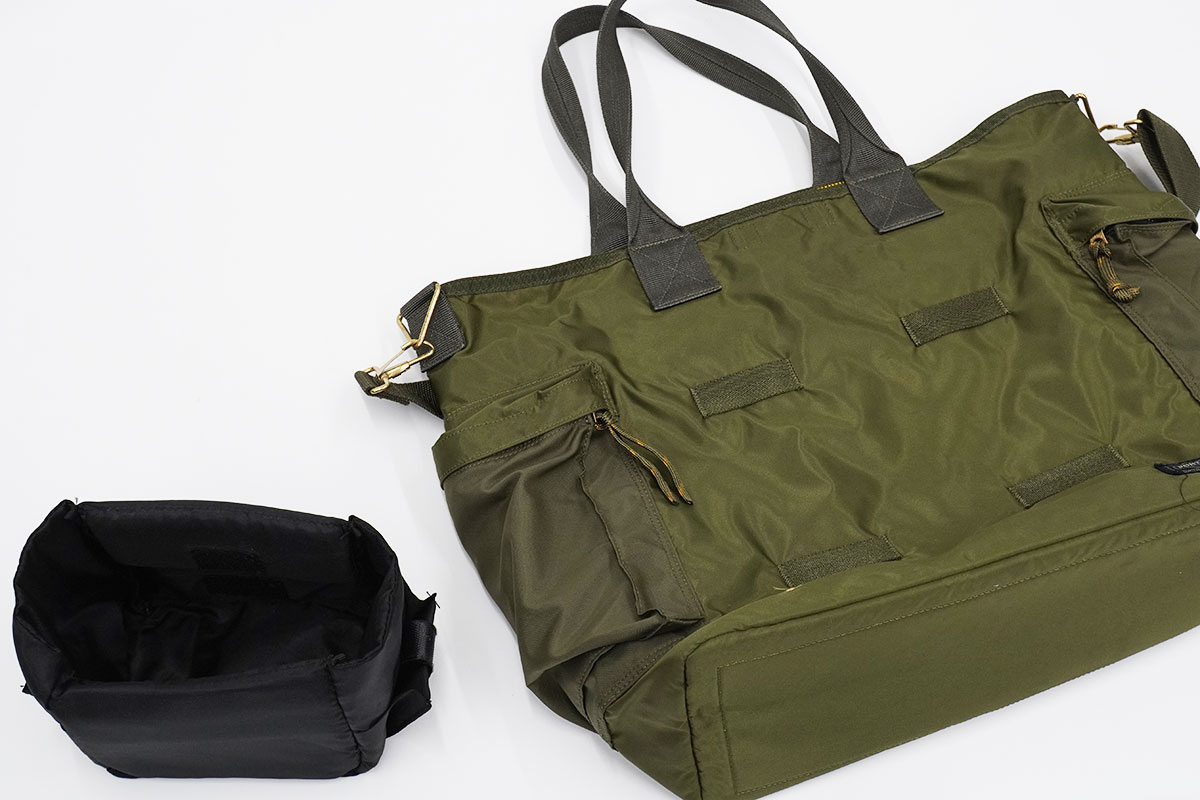時と場合によっては、インナーケースを外したまま大きめ荷物を入れる普通のトートバッグとしても使える。