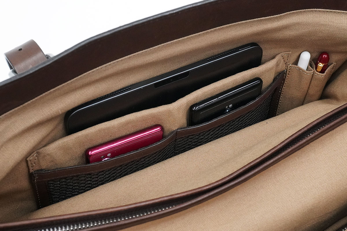 必携アイテムとも言えるスマホがはいるスペースが2つ。