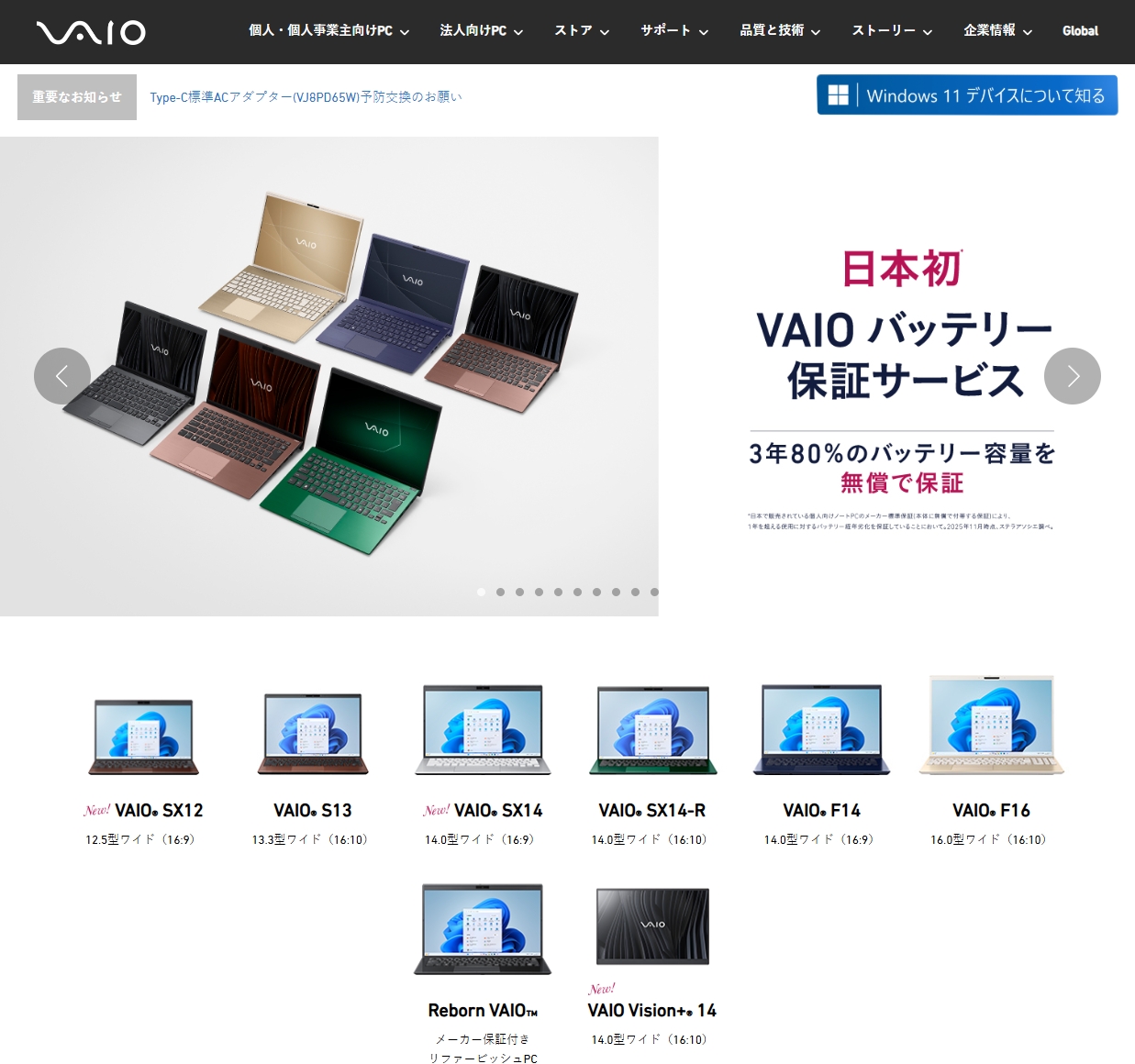 ※個人・法人向けともにReborn VAIO™は除く
