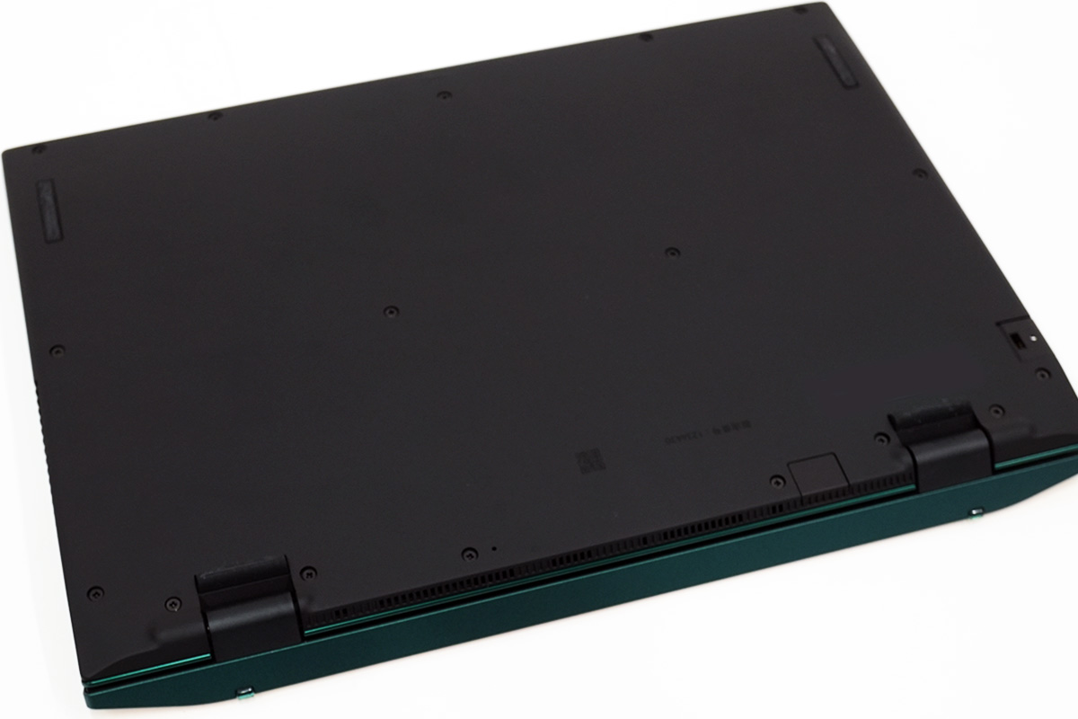 底面も天板同様に熱可塑性カーボンを採用していて、ネジ穴も直接アクセスできるように視認できるため、メンテナンスのしやすさを考慮。