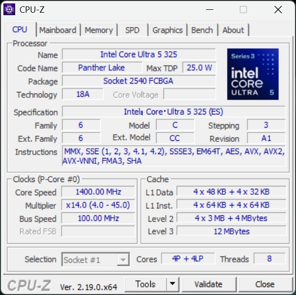 Intel Core™ Ultra プロセッサー「Panther Lake」TDP 25W