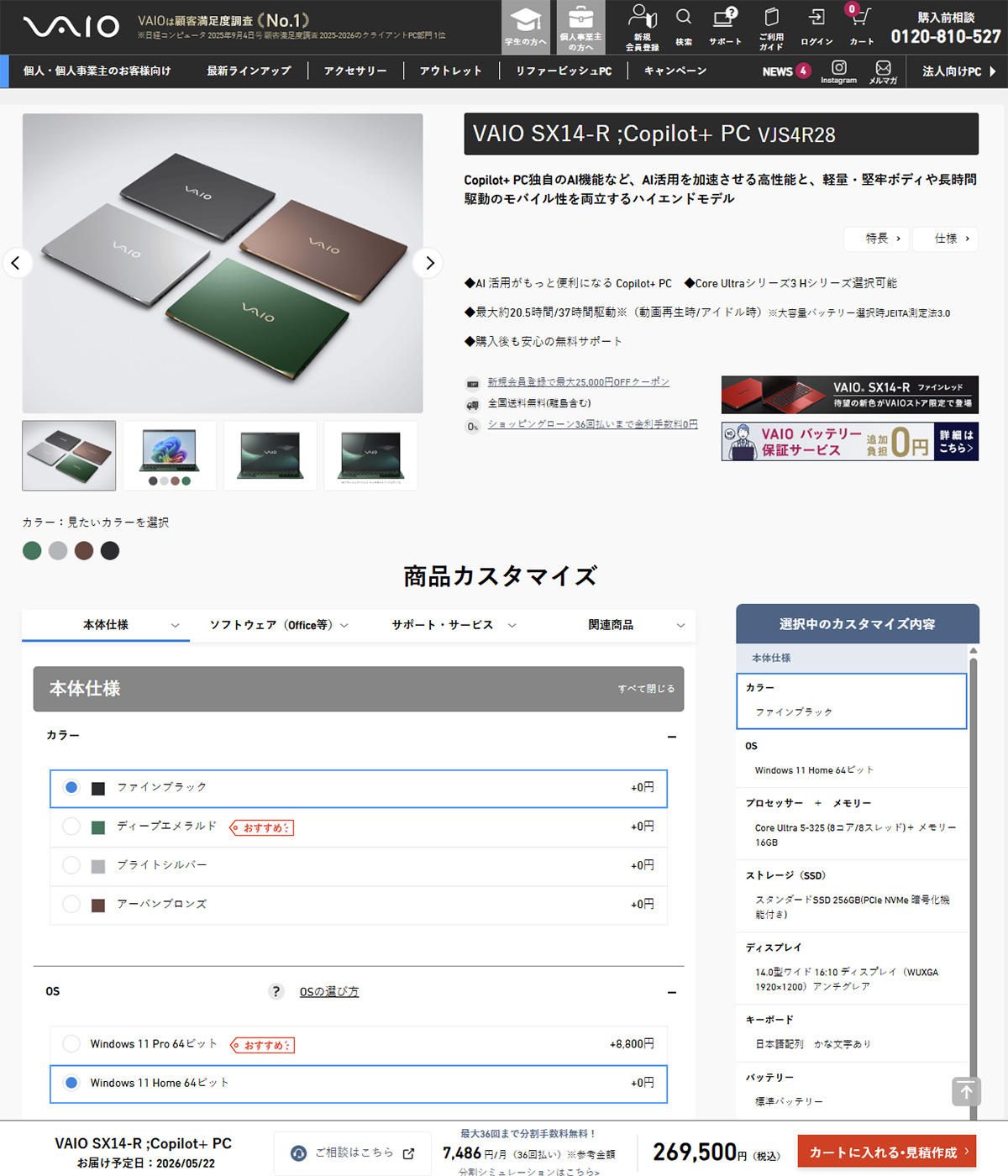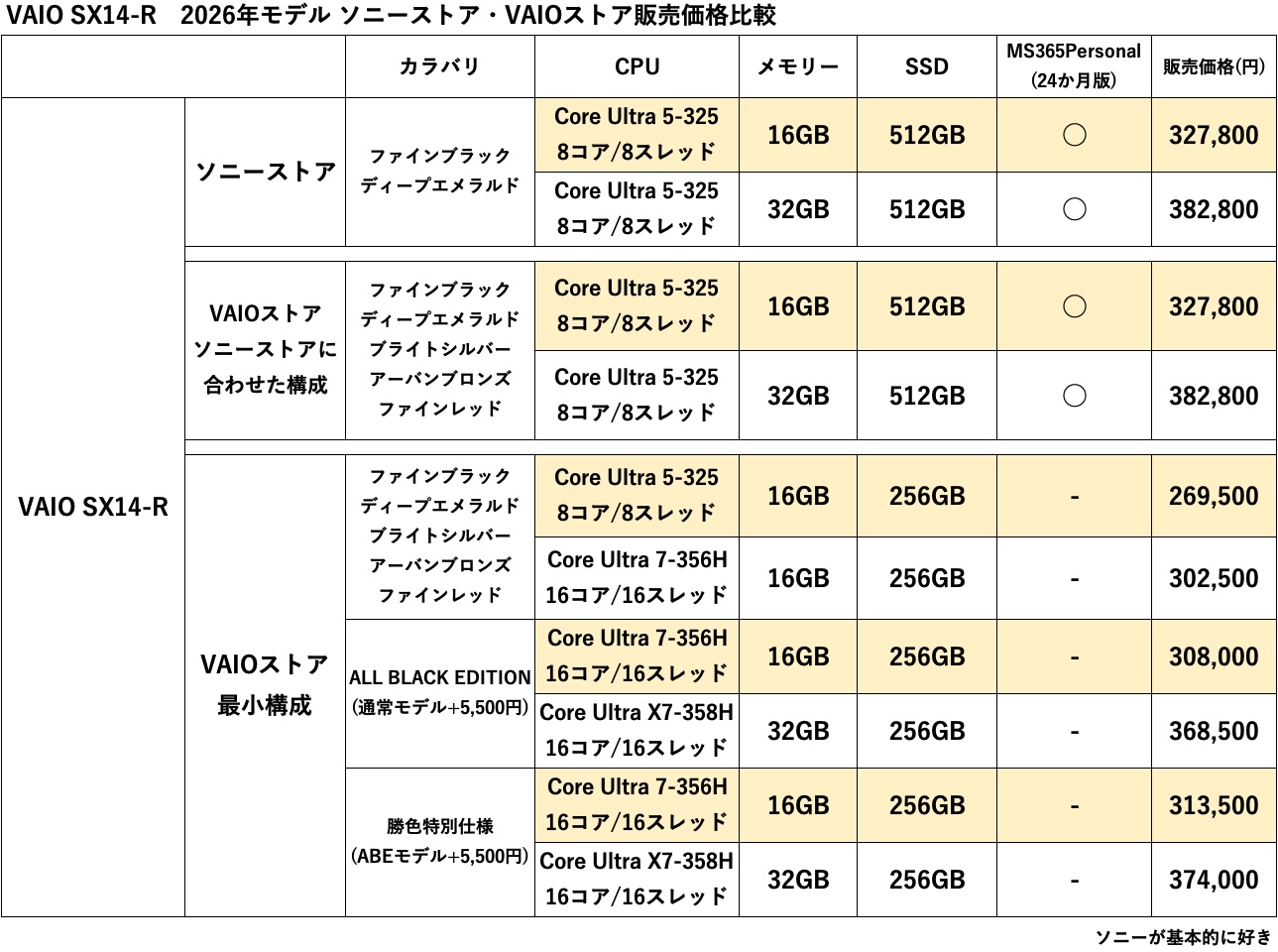 VAIO SX14-R 2026年モデル、ソニーストアとVAIOストアを比較。カスタマイズできるVAIOストアか?迷わず選べる標準仕様のソニーストアか?