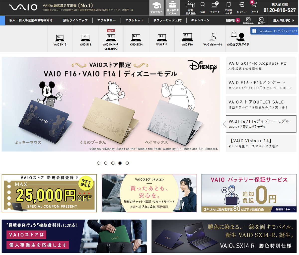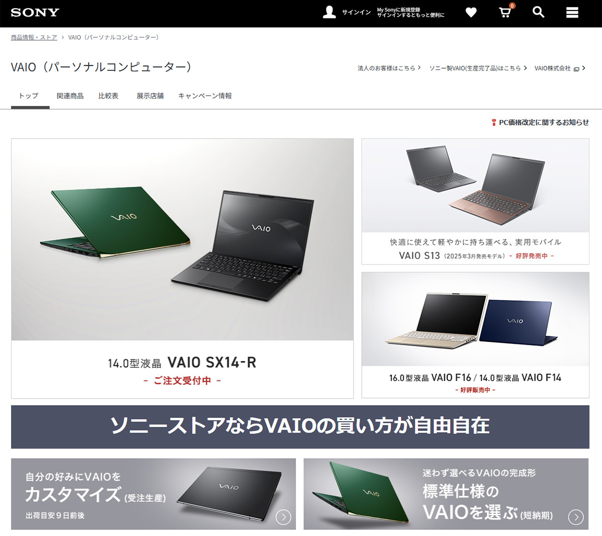 カスタマイズや延長保証が魅力な「VAIOストア」。