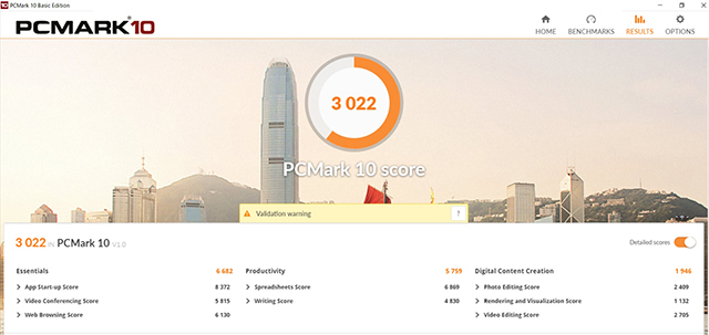 プロセッサーやグラフィックス単独の性能ではなく、メモリーやストレージ含めて全体にかかるPCの総合的なパフォーマンスを計測するベンチマークソフト「PCMark10」。