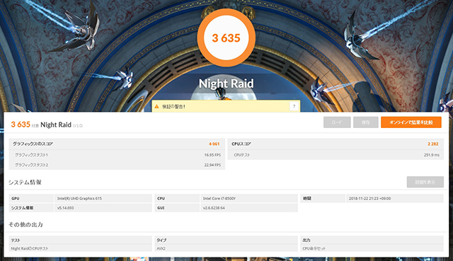 もちろん「Core i7-8550U(1.80GHz) / Intel UHD Graphics 620」 のVAIO S11がよりスコアが高く設定も高くして出来ることには変わらず、性能差はきっちりと出ている。