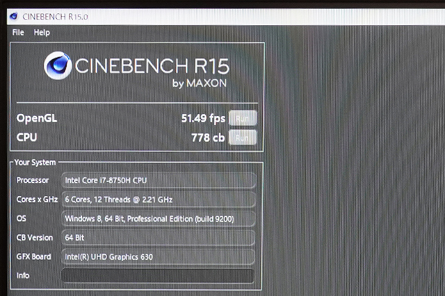 (Core i7-8750Hの内蔵GPUではOpenGL 51.49fps。)