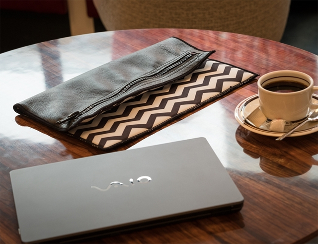 「VAIO S11」がぴったり入る、VAIOストア別注オリジナルデザインのクラッチバックタイプのバッグ。