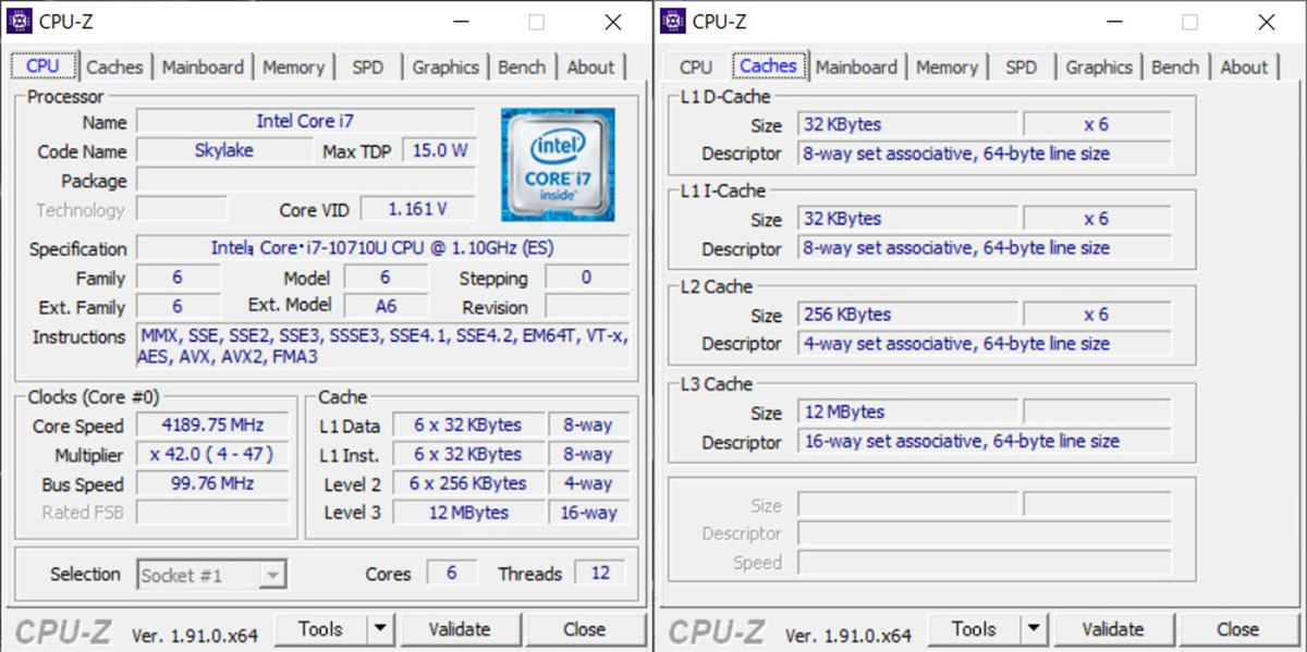 最上位CPUとなるCore i7-10710Uでは、6コア12スレッドとなっており、よりマルチコアでのパフォーマンスを発揮できる優位性を重視している。