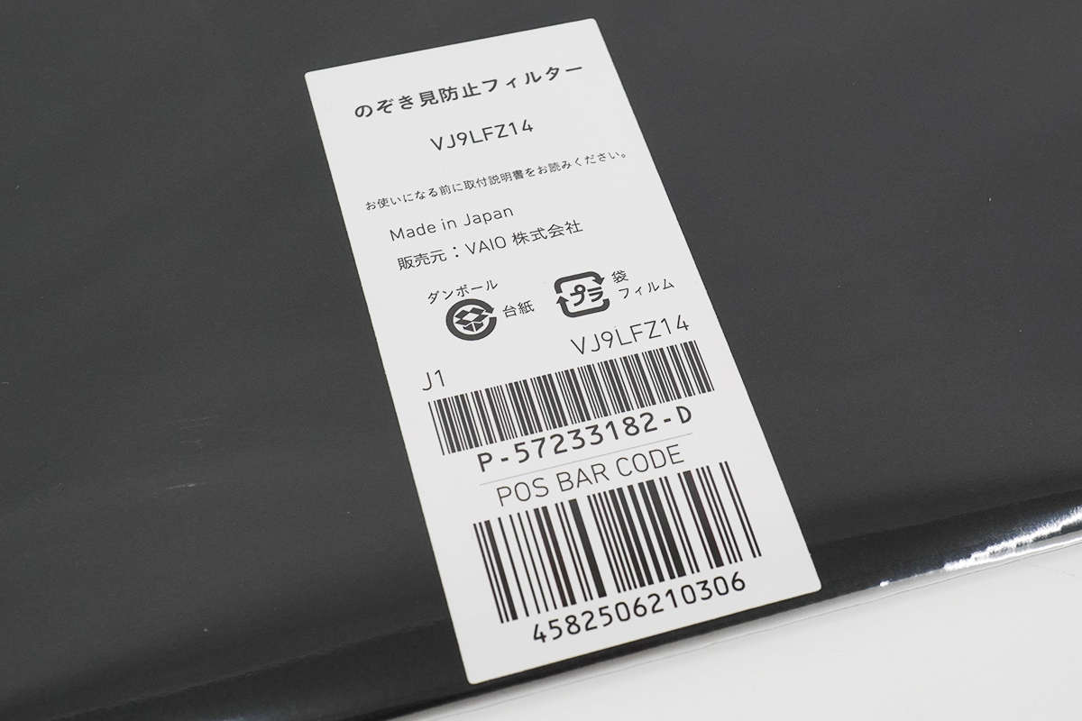 VAIO Z専用ののぞき見防止フィルター「VJ9LFZ14」