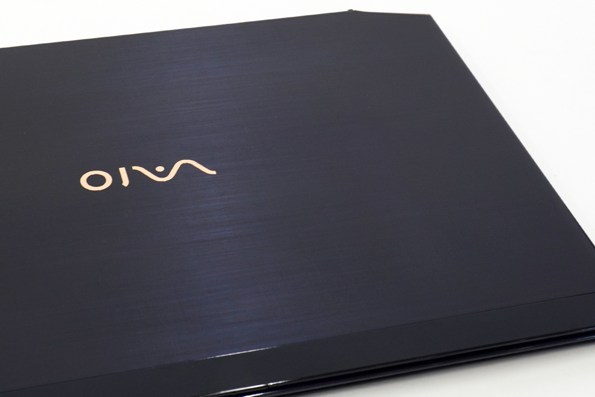 専用のパッケージまでも勝色に染め上げて、ボックス天面には箔押しによるVAIOロゴを配置。開ける前からステイタスを感じられる。