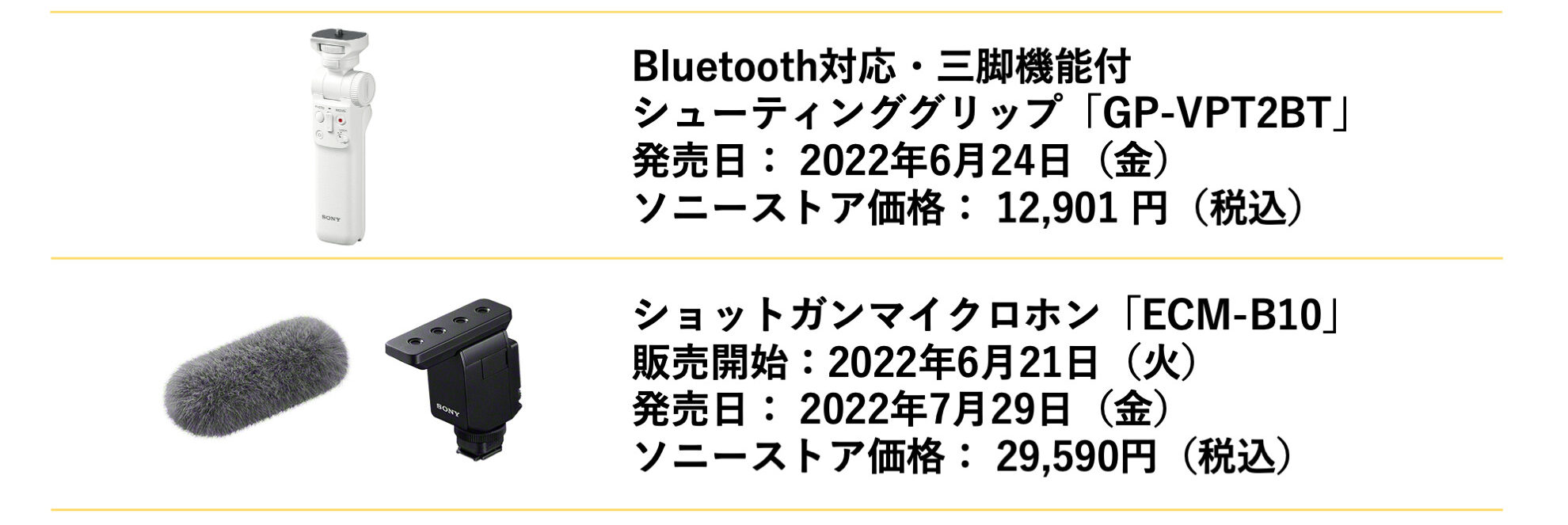 ![]() ワイヤレスリモートコマンダー機能付シューティンググリップ「GP-VPT2BT」 ソニーストア販売価格:12,901 円(税込)~ ●ソニーストア割引クーポン10%OFF ●提携カード決済で3%OFF |