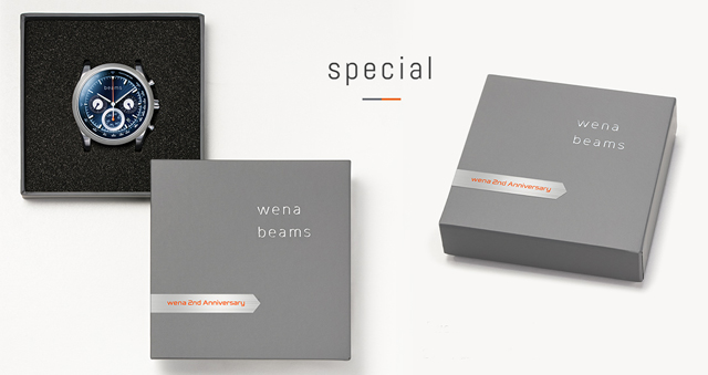 今回のコラボレーションを記念して、” Chronograph Solar Silver -beams edition-”とあうようデザインされた「wena × beams」特注レザーブレスレットを先着222名にプレゼント。