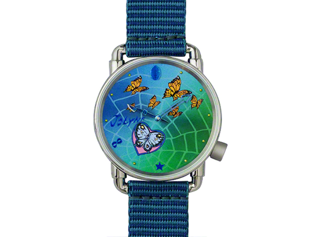 秒針の背景には、娘を想い浮かび上がる”JOLYNE”の文字が。