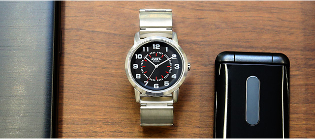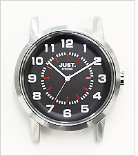 そして文字盤はブラックにアラビア数字を大きく表示して視認性の高いデザインに、JUSTSYSTEMSのロゴと、ブランドカラーとなる赤を差し色としている。