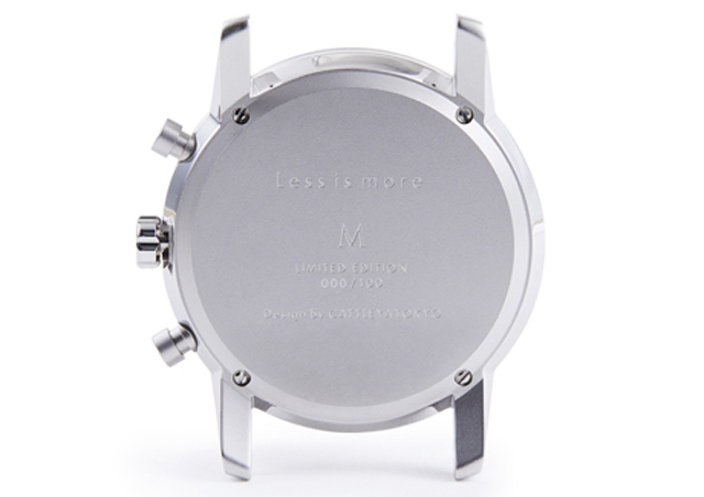 また、ヘッド部裏面には、『Less is more』という共通の価値観をこの時計のオーナーである100名と共有するという意味をこめて『000/100』と刻印される。