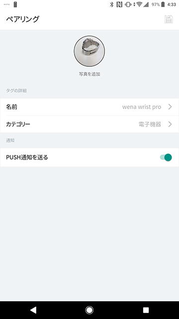 「MAMORIO」アプリから「wena wrist pro」や「wena wrist active」とbluetoothで接続できたら、どんなものかを登録しておく。