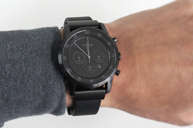 ソーラーモデルのヘッド部クロノグラフとスリーハンズどちらとも、他のヘッド部に比べてスリムにかつ薄くできている事もあって、「wena wrist active」の細身のバンドにも見事にフィットする。
