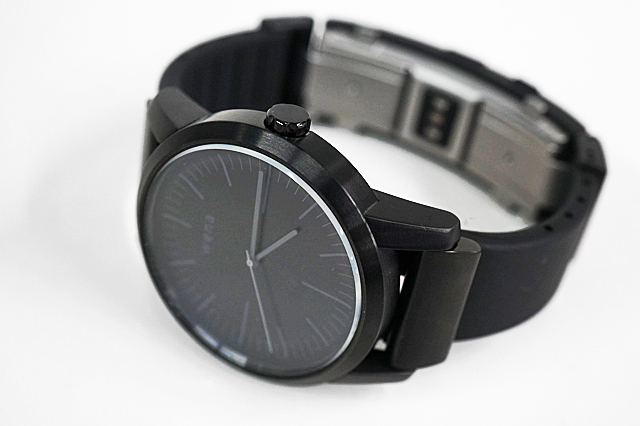 コンパクトなレクタンギュラー(長方形)型のアナログ時計で、シンプルかつ軽快な着け心地を主体にした、他のヘッドとは全く異なる。