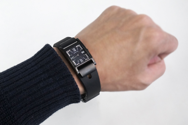 女性の細い腕にもフィットするようにということで、長方形型ヘッドが採用されているのだけれど、これがまた「wena wrist active」との相性が良くて、最小構成たる組み合わせができるのが圧倒的にツボ。