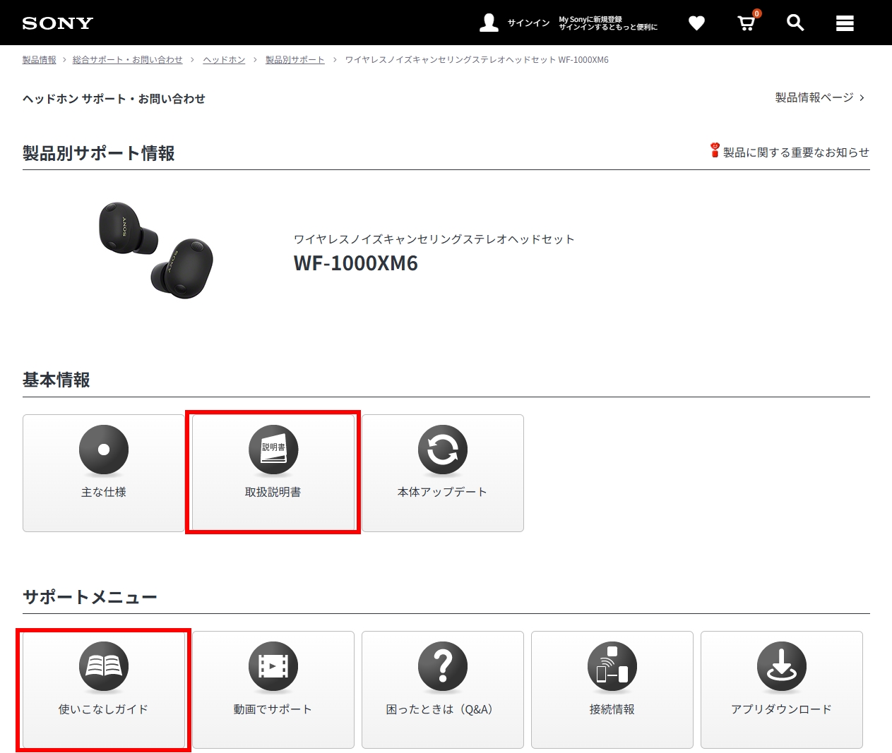 ・ワイヤレスノイズキャンセリングステレオヘッドセット WF-1000XM6 | 製品別サポート | ヘッドホン | 総合サポート・お問い合わせ | ソニー