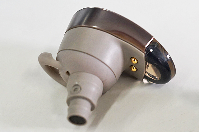 実際に「WF-1000X」を耳に装着してみると、なるほどイヤーピース部分の長さと、フィッティングサポーターが耳の穴近くのフチ(耳甲介腔)のホールド感があって、適度な装着感。