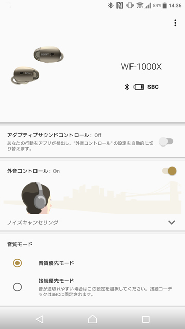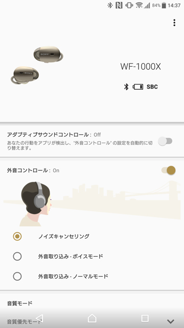 また、「音質モード(音質優先モード/接続優先モード)」の切り替えもできる。