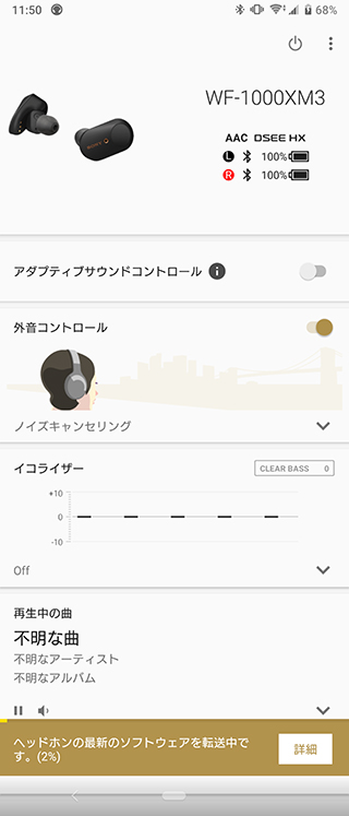 無事に終了すると、通常通り「Headphones Connect」アプリが表示されて完了。