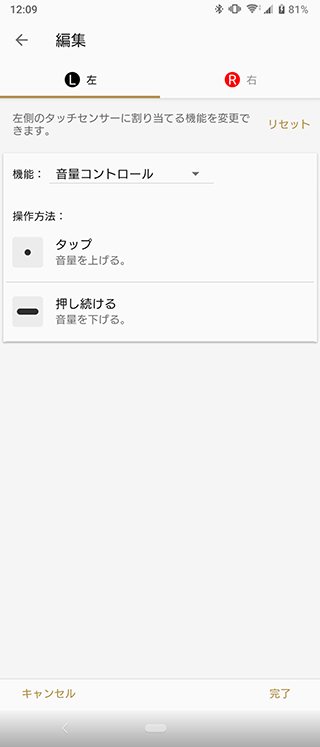 やり方としては、アプリの「タッチセンサーの機能の変更」から変更。