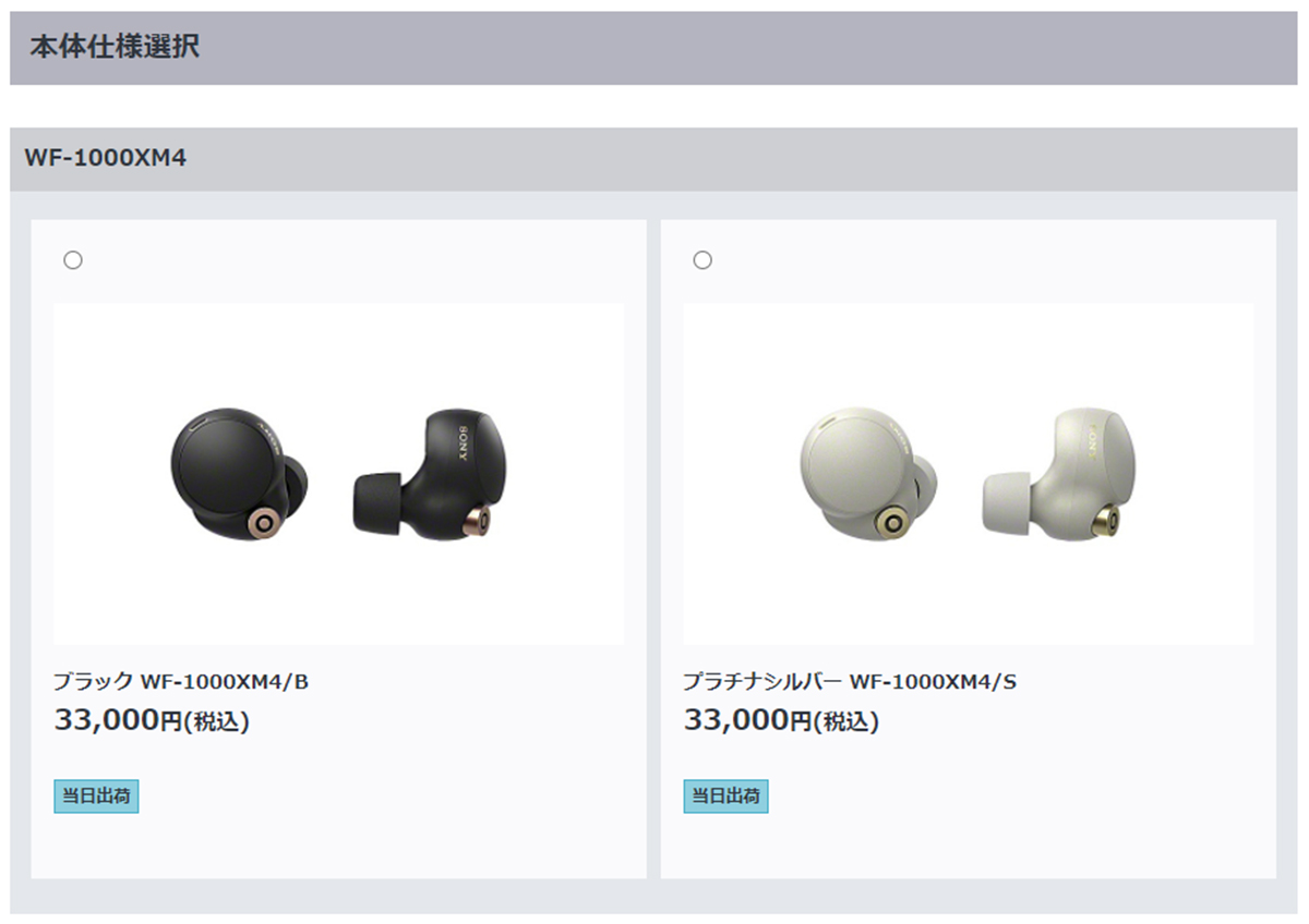 <例> WF-1000XM4:33,000円(税込)
