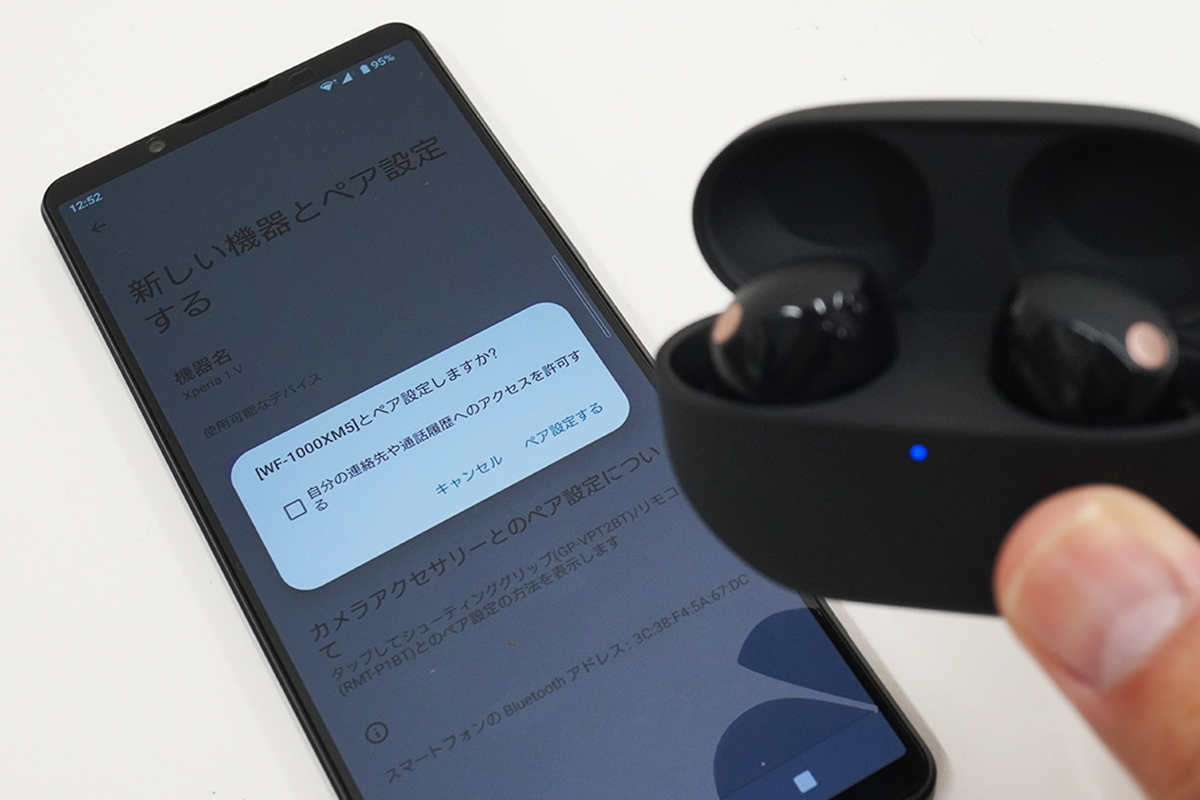 「WF-1000XM4」の場合、専用ボタンがなかったため、ペアリングしようと思ったらイヤホンを一旦両耳に入れて両方のタッチセンサーを長押しして「Bluetooth ペアリングモード」にするというめんどくさい方法しかなかったので、素直にかんたんになった。