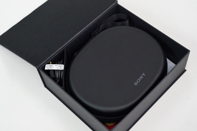 開梱した黒いパッケージを開くと、持ち運びに必須ともいえるキャリングケースに「WH-1000XM2」の本体が収まっている。