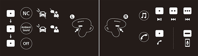 本体のどちらにもボタンが備わっていて、スマートフォンなどの音楽再生機の曲送り/戻し、再生/一時停止、ノイズキャンセリング/外音取り込みの切り替え、さらには電話の着信を受けたり終話させたりなどの操作が可能。