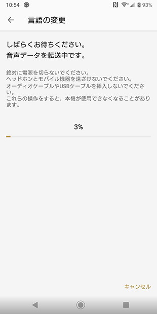 音声データの転送にしばらく、だいたい5分程度待機しておくと、変更が完了。