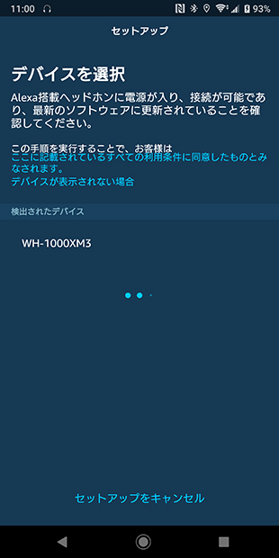 連携している「WH-1000XM3」と「WH-1000XM2」、「WI-1000X」が見つかるので、Alexaを設定するデバイスとして設定すればOK