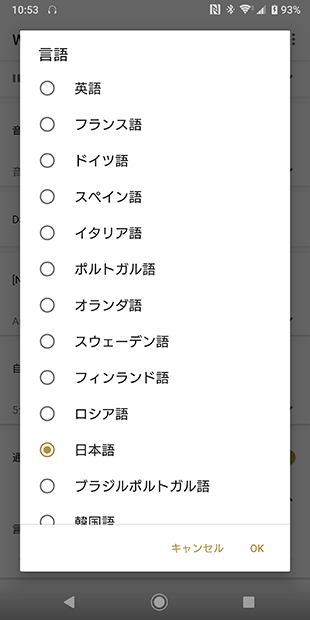 「Headphones Connect」アプリの”通知音と音声ガイダンス”から、言語を選ぶ。