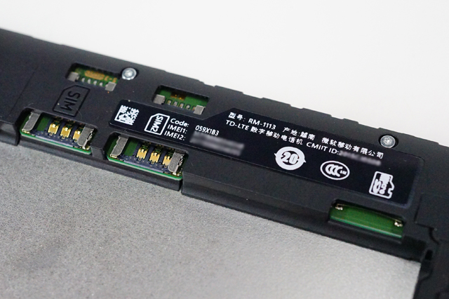 はい、これが背中丸見え状態。SIMカードはMicro SIMが2箇所入るようになったデュアルSIMのタイプ。