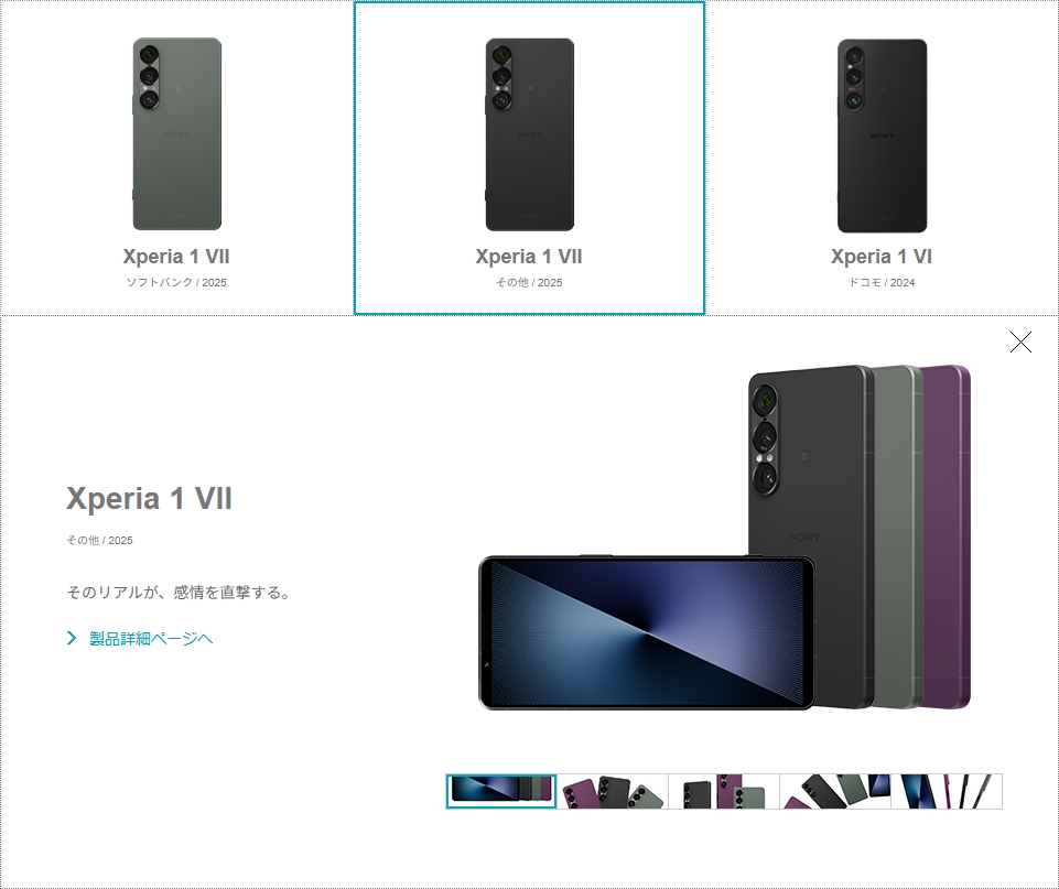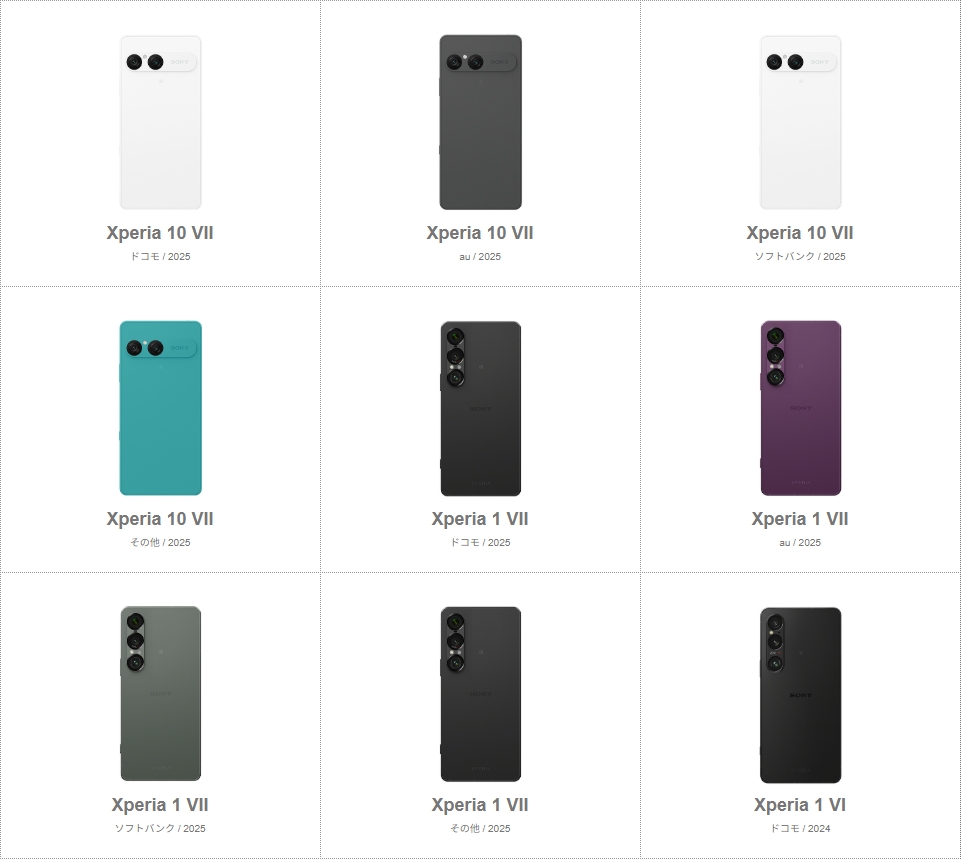 このサイトに、2025年最新モデルの「Xperia 1 VII」・「Xperia 10 VII」が追加された。