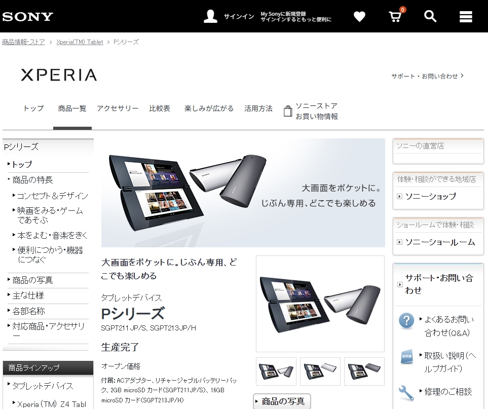 またソニー製品として発売された「Sony Tablet P」や「Xperia Z Ultra(Wi-Fiモデル)」、「Xperia Z3 Tablet Compact」、スマートフォンともタブレットとも異なる「Xperia Touch」・「Xperia Hello!」もミュージアムサイトには掲載されていない。