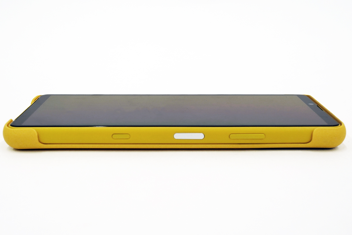 基本、サイドの4辺は露出したままなので、ケースに装着したままても、本体右側にあるボリュームキー/電源キー/Google アシスタントキーや、下側にあるUSB type-C端子、上部のヘッドホン端子などすべてダイレクトにアクセスできる。