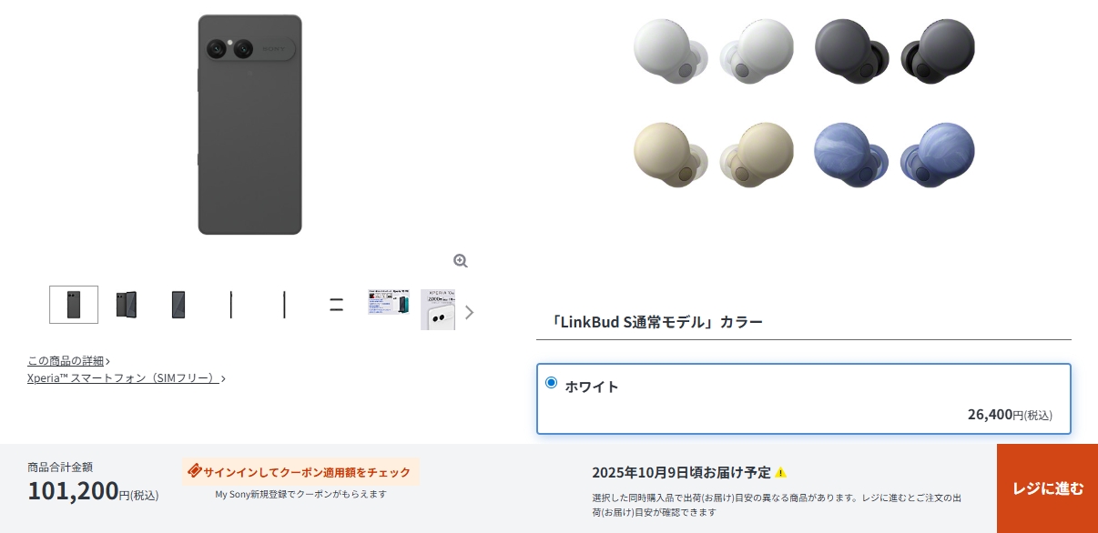 Xperia 10 VII(XQ-FE44)」の購入ページには、完全ワイヤレスイヤホンLinkBuds Sを同時購入できる。