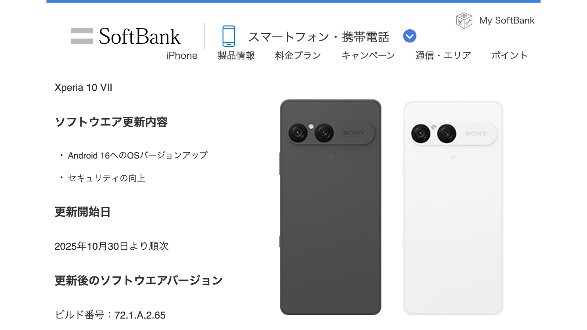 国内Xperia 10 VIIの中で、2番目にAndroid 16になったのはXperia 10 VII のソフトバンクモデル。