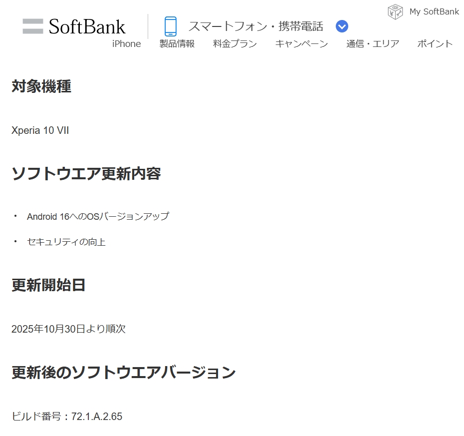 ●ソフトバンクモデルXperia 10 VIIに国内Xperia初Android 16配信開始