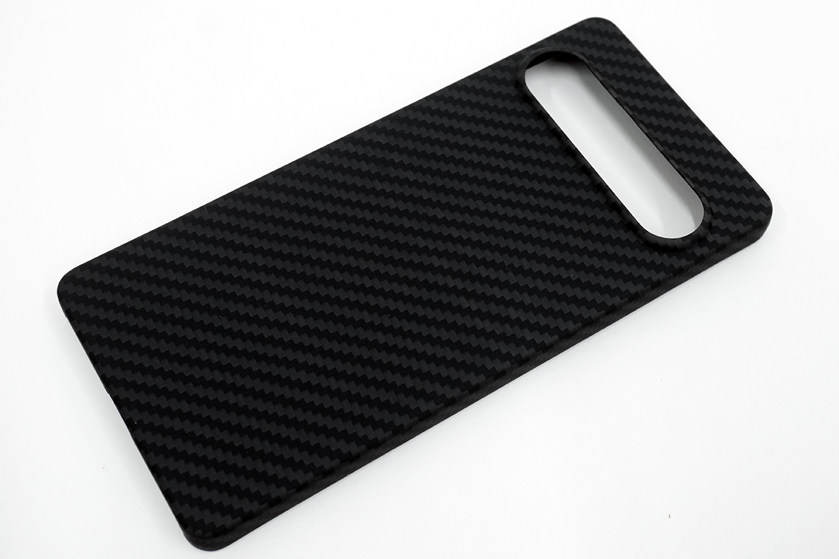 耐衝撃にも優れたアラミド繊維を使用したケースで、約0.65mmの厚みと重量約14gというのが魅力。