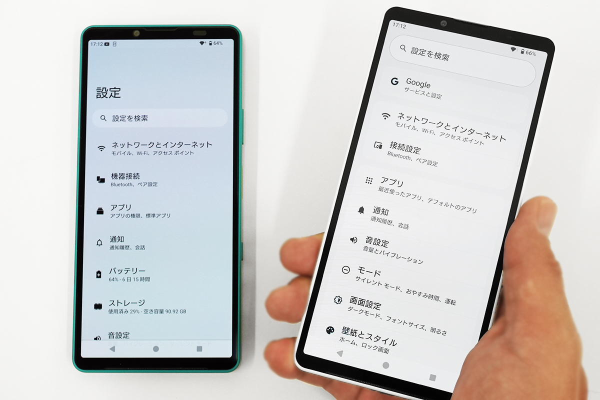 Xperia 10 VII Android 15の設定メニュー配置 Xperia 10 VII Android 16の設定メニュー配置