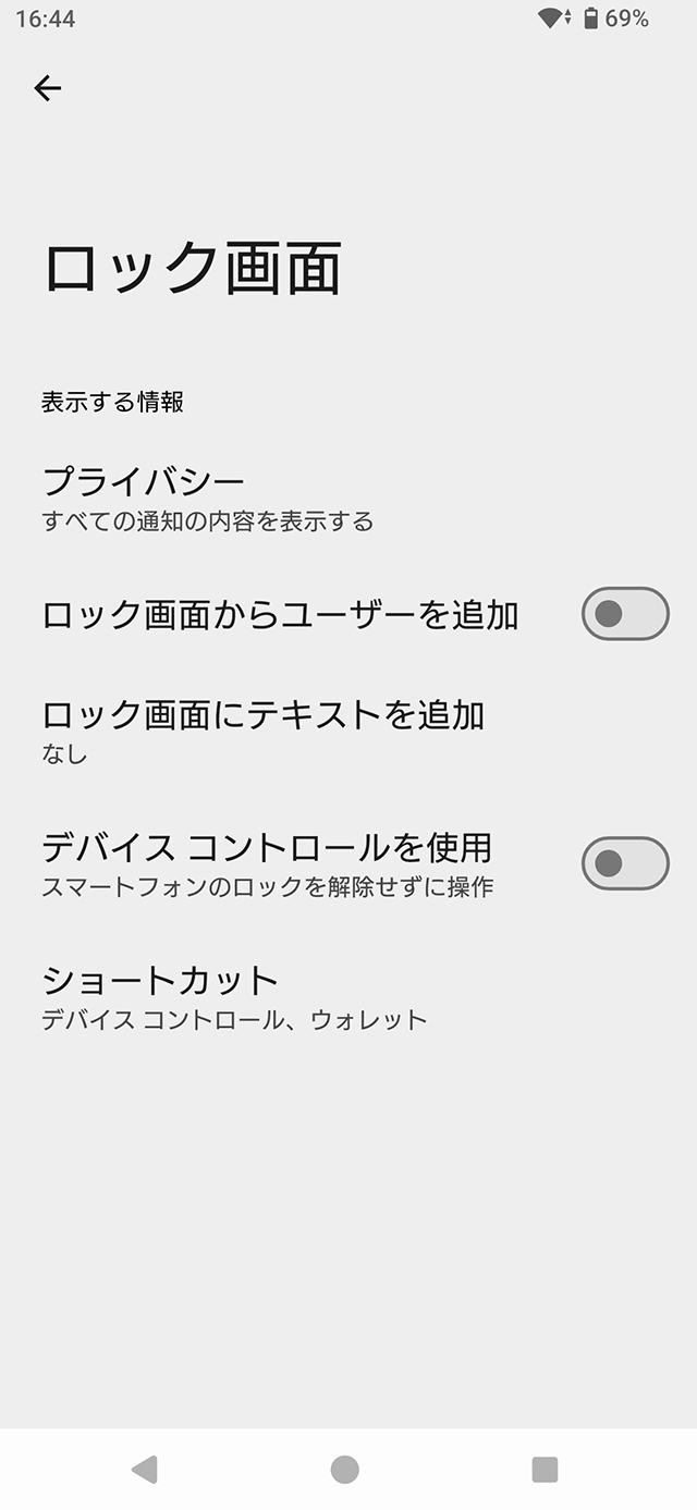 Android 16になったことで、UIに加えて設定メニューの配置が変更になっている。