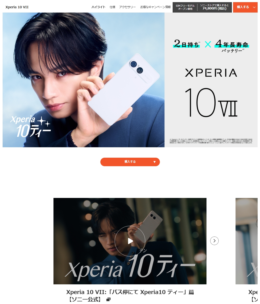 Xperia 10 VII 製品ページトップが、Xperia 10ティーとして更新。