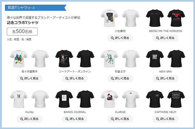 ・記念コラボTシャツ 計5,000名(各デザイン500名)(第1期:各デザイン250名/第2期:各デザイン250名)