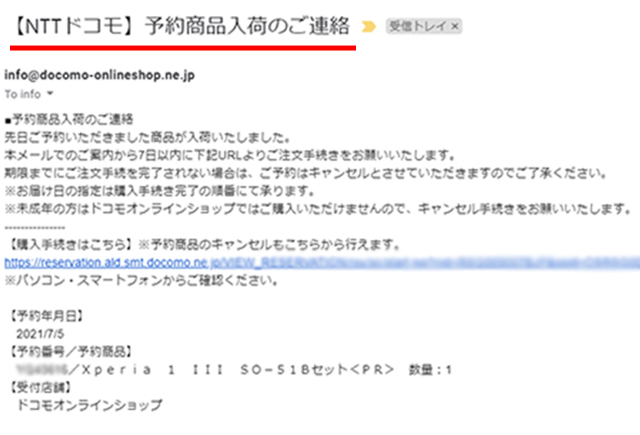 7月12日(月)、NTTドコモから「予約商品入荷のご連絡」のメール到着。